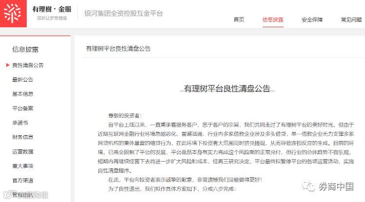 而一家平台出事,往往暴露出背后的资本系,从而引发多家问题平台。一个典型的例子是,上市公司天成控股背后的银河天成集团布局互联网金融业务,旗下持有啄米理财、有理树金服两家平台,其中有理树金服7月23日刚刚公布清盘公告,仅过了两天,啄米理财就被杭州警方以涉嫌非法吸存立案调查。