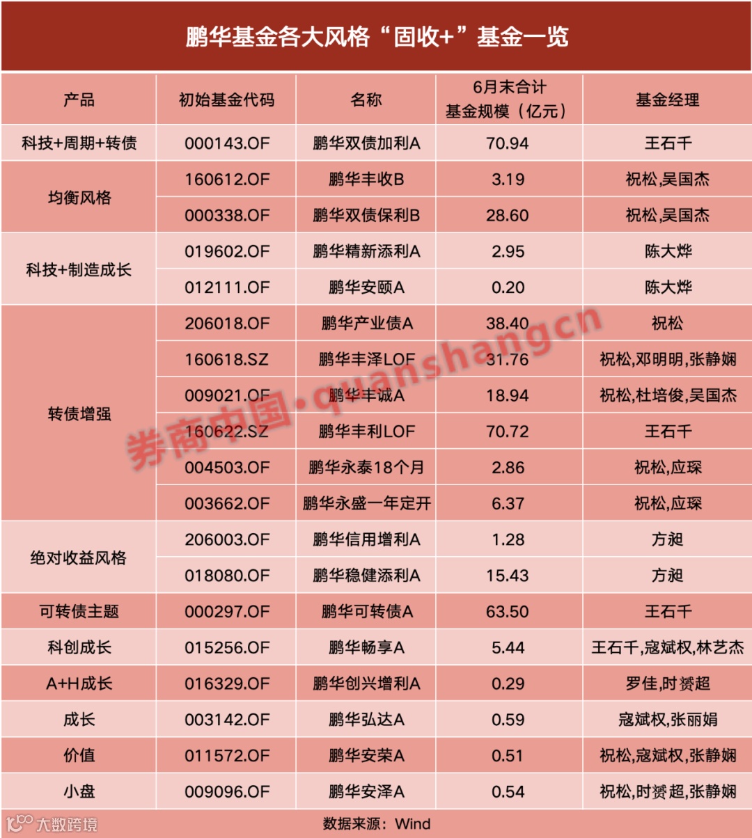 Wind数据显示,截至二季度末,鹏华基金旗下“固收+”基金整体规模约600亿元,位居行业第八位,较一季末的规模排名提升5个名次。