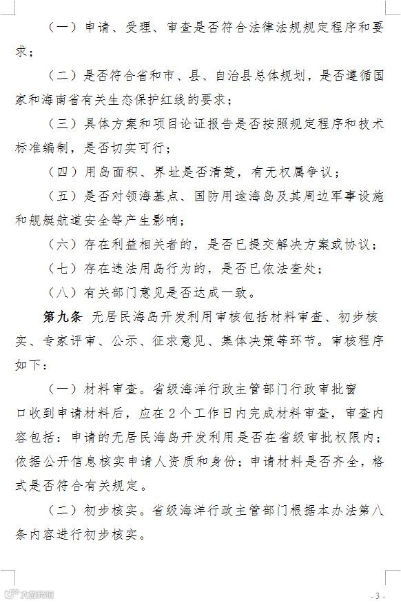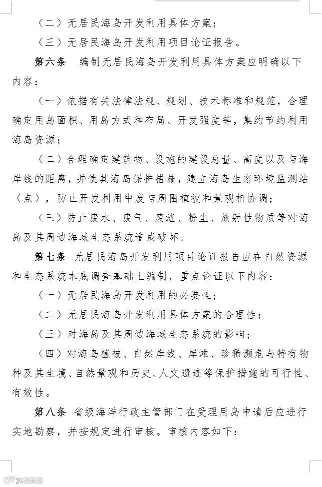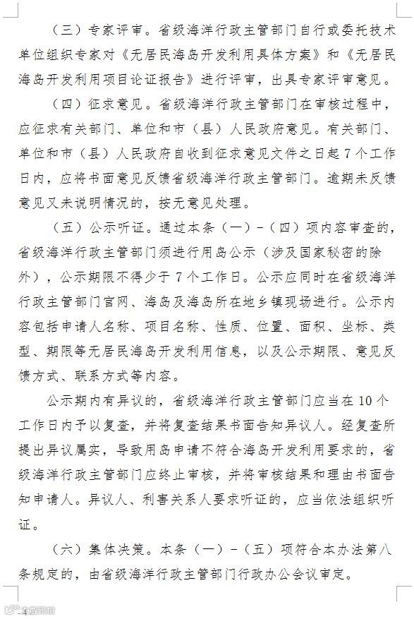 3、从审核程序来看,无居民海岛开发利用审核包括材料审查、初步核实、专家评审、公示、征求意见、集体决策等环节。