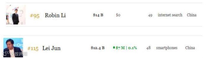 值得一提的是,虽然开盘破发报16.6港元,但雷军个人财富达到124亿美元,全球排名第115。据福布斯实时富豪榜排名显示,7月9日上午,雷军财富达到124亿美元,全球排名第115,逼近李彦宏的140亿美元,李彦宏全球排名第95位。