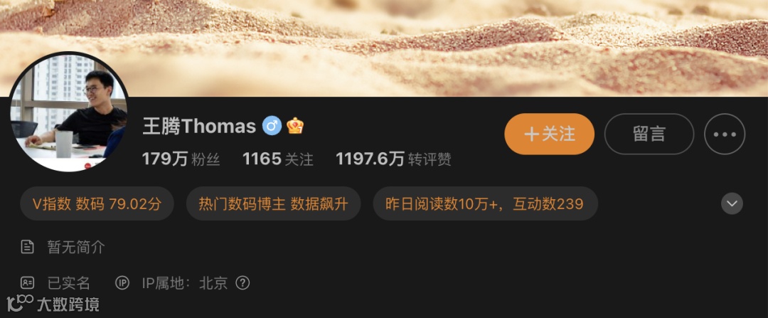王腾系微博平台上的头部数码博主,其微博账号“王腾Thomas”拥有粉丝179万。目前,其微博关于小米职务的相关认证已经消失。