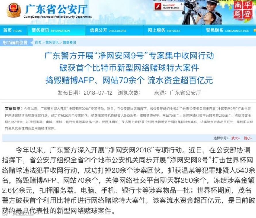 其中,世界杯期间,茂名警方破获首个利用比特币进行网络赌球特大案件,该案流水资金超百亿元。