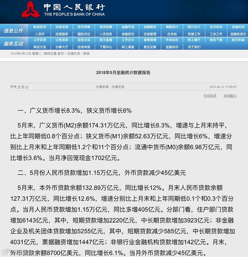 根据央行的初步统计,5月末社会融资规模存量为182.14万亿元,同比增长10.3%。其中,对实体经济发放的人民币贷款余额为126.1万亿元,同比增长12.6%。