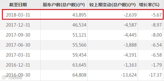 截至一季末,*金亚总股东户数为4.4万。值得注意的是,从股东户数来看,*金亚的股东总户数已经连续七个季度连续下跌。