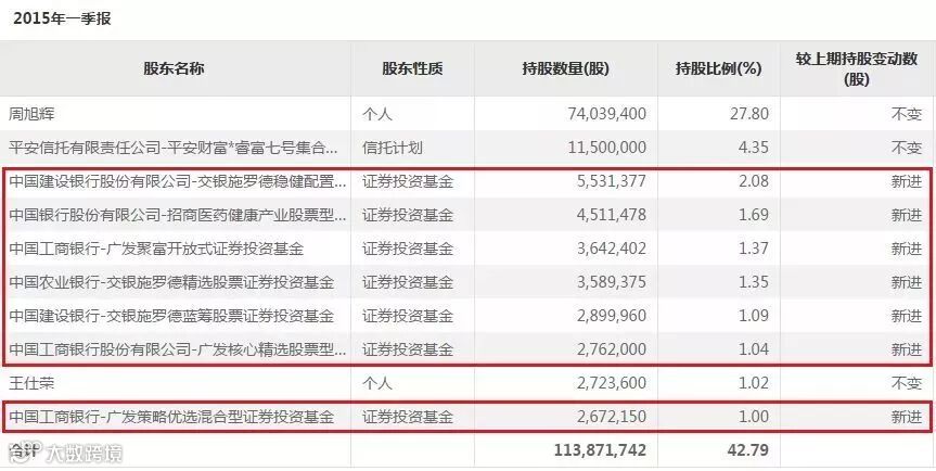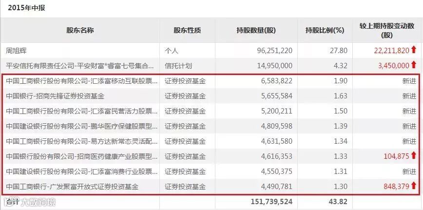 到了2015年中报,十大股东中上述7只基金仅剩2只,换来的却是6只新基金面孔。