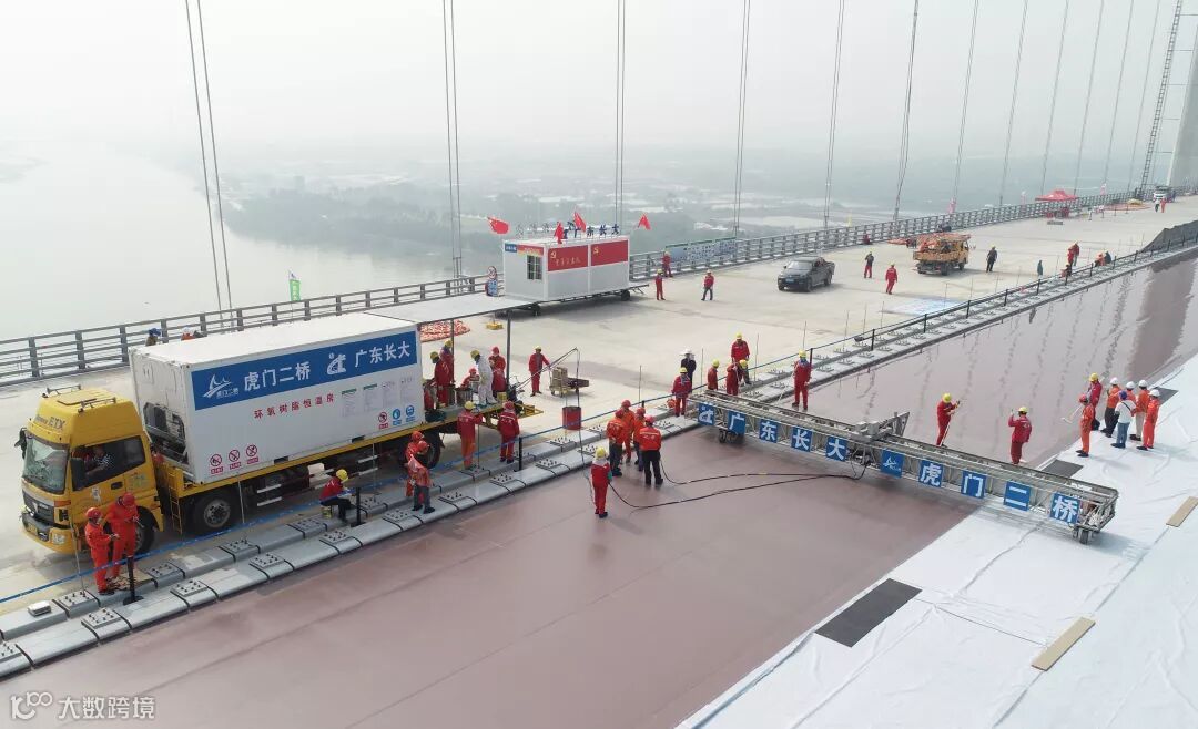 11月6日,伴随着机械化作战兵团的轰鸣声,广东省长大公路工程有限公司承担建设的虎门二桥钢桥面铺装施工全面铺开,标志着虎门二桥项目建设进入最后决战阶段。