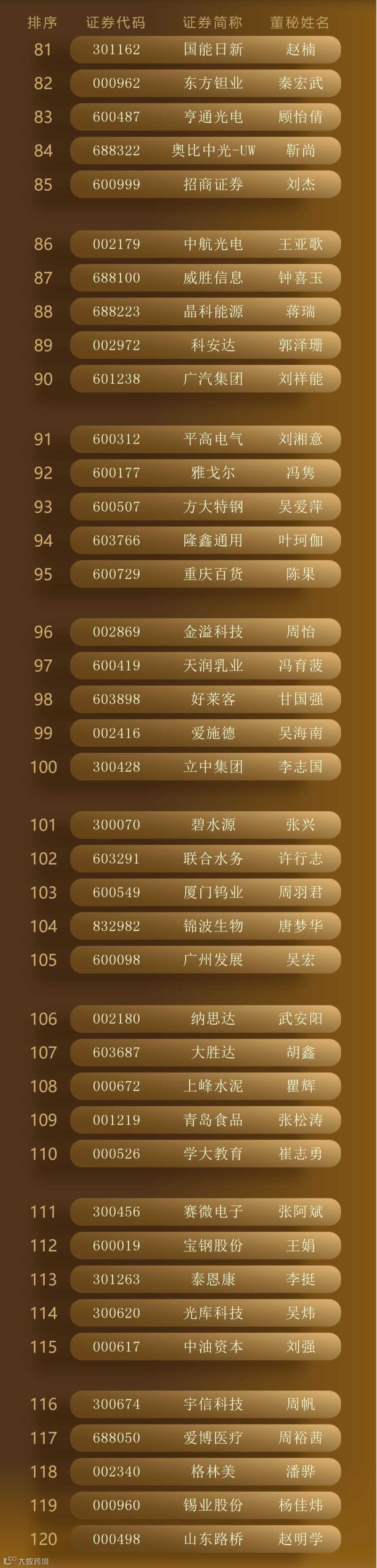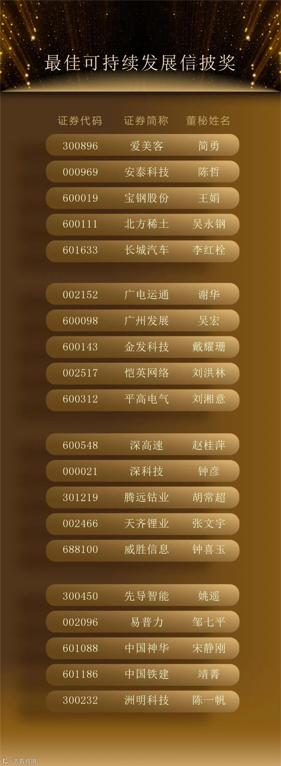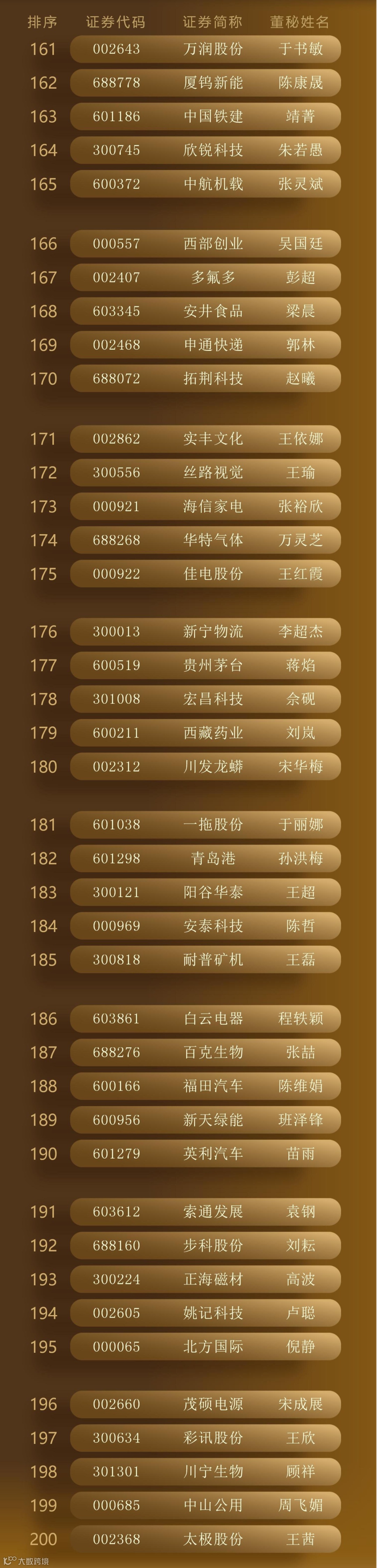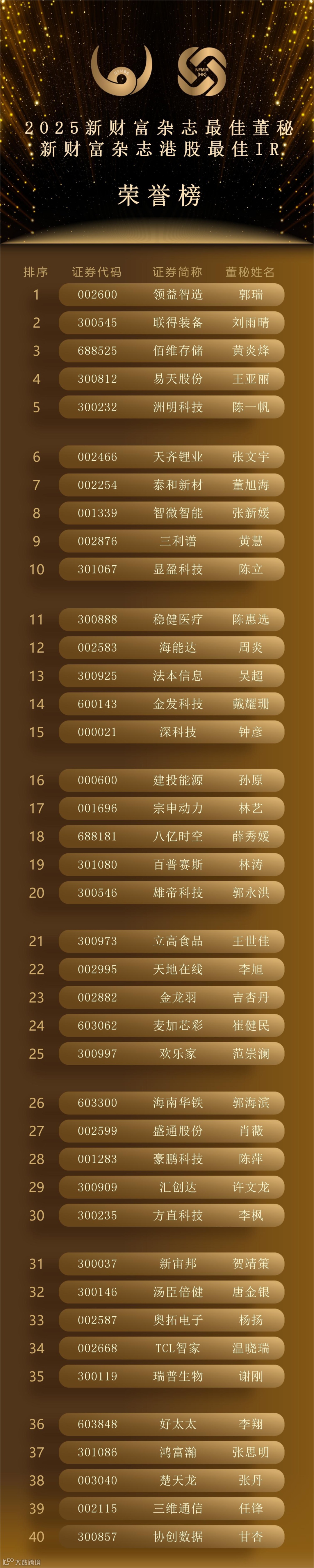 最终,300位“最佳董秘”、50个“最佳证代”团队、102个“港股最佳IR”团队脱颖而出,以下为详细名单。
