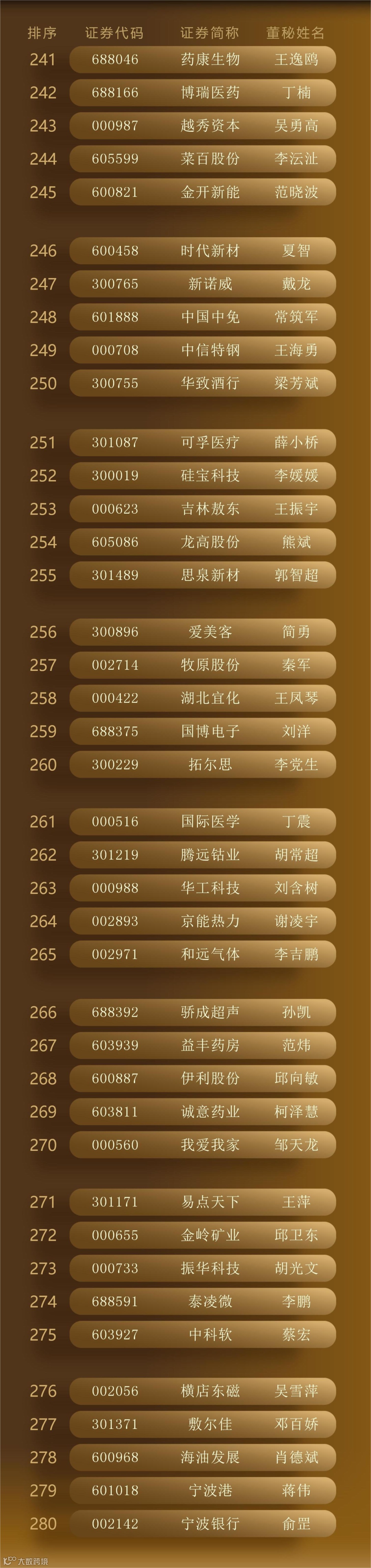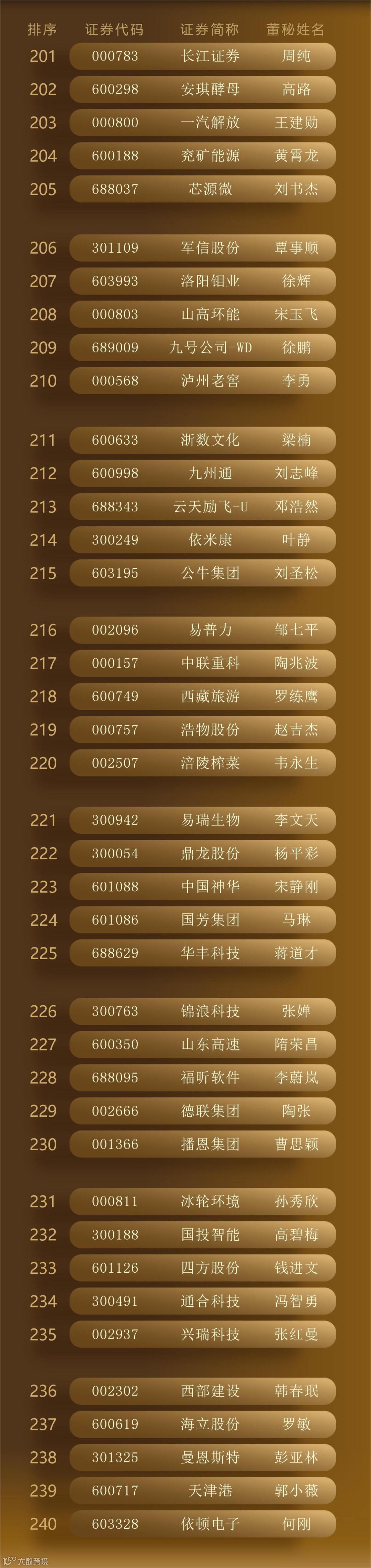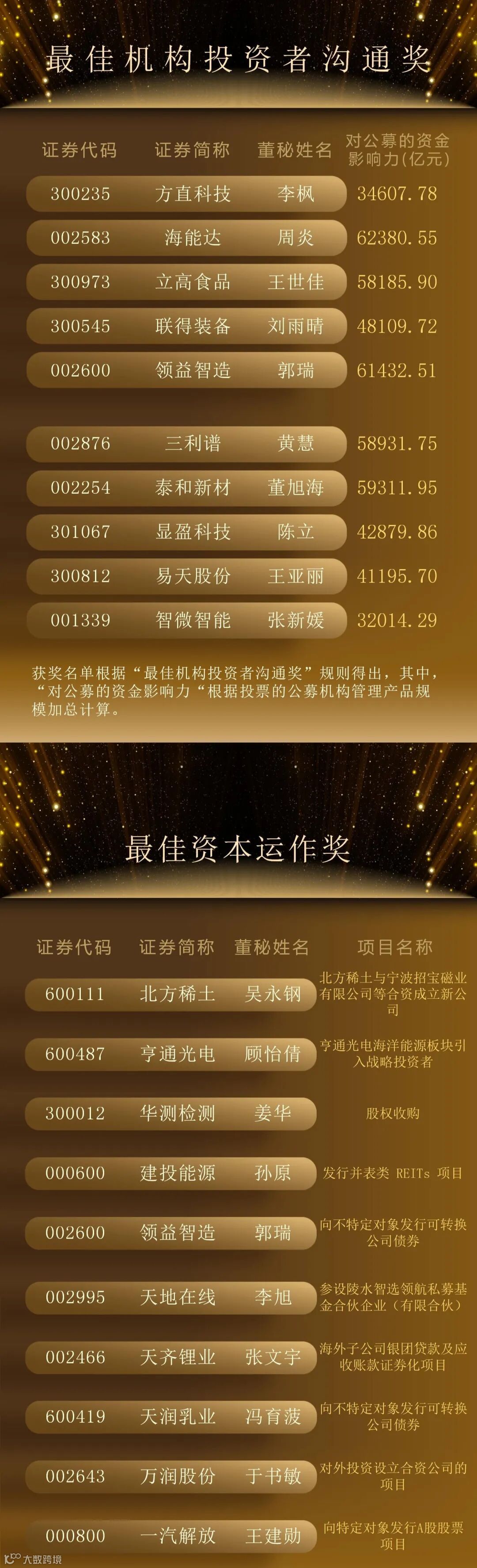 最终,300位“最佳董秘”、50个“最佳证代”团队、102个“港股最佳IR”团队脱颖而出,以下为详细名单。