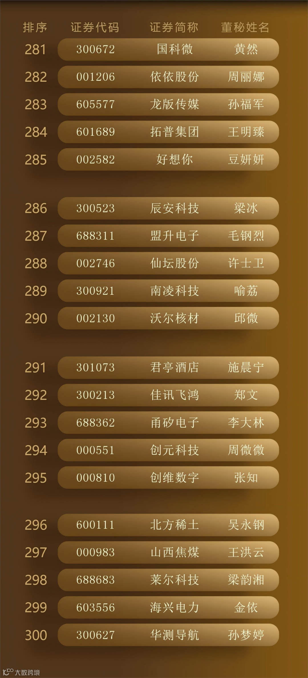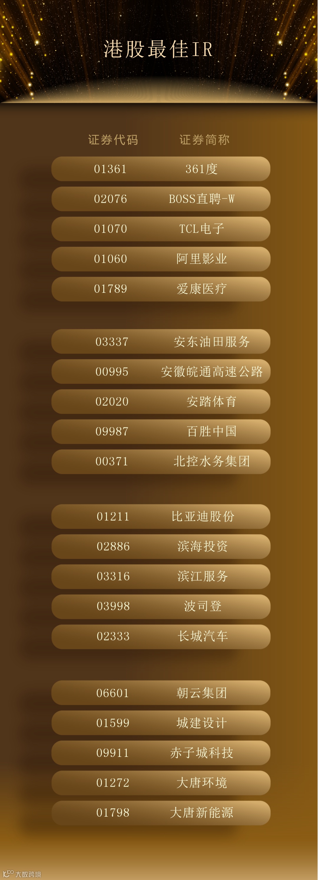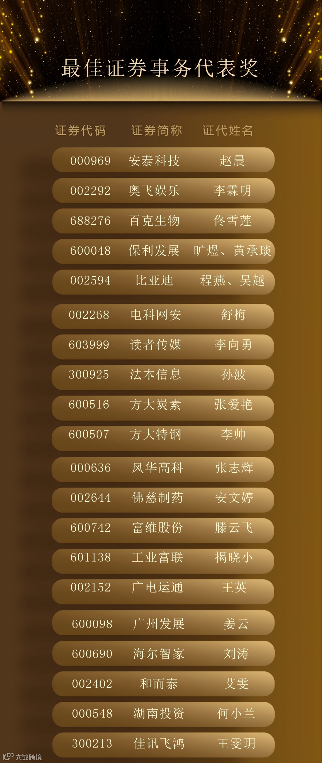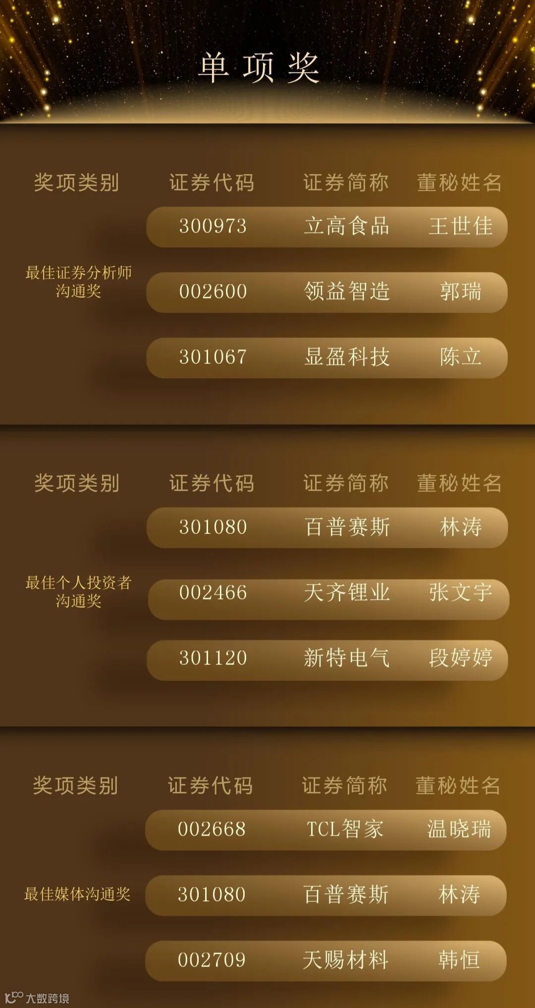 最终,300位“最佳董秘”、50个“最佳证代”团队、102个“港股最佳IR”团队脱颖而出,以下为详细名单。