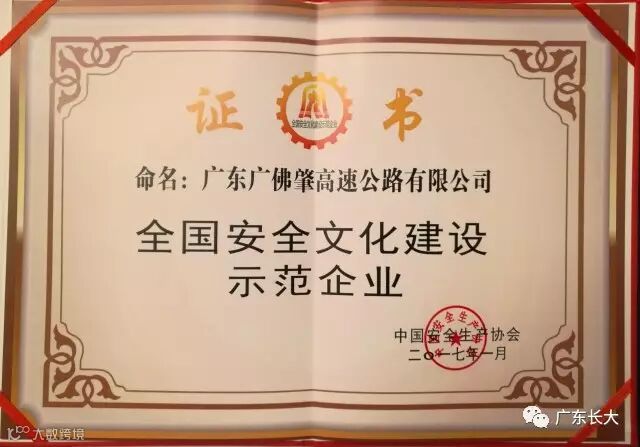 5月19日,中国安全生产协会在河南郑州召开全国安全文化建设示范企业创建工作座谈会,并向获得2016年度全国安全文化建设示范企业称号的单位表彰授牌。广东省长大公路工程有限公司下属广东广佛肇高速公路有限公司获此殊荣并作为代表参加会议。