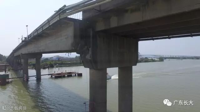 4月1日早上9时50分,一艘货船通过珠海斗门莲溪大桥时不慎撞在通航孔桥跨上,导致主桥错位,被撞通航孔最大移位1.6米,主桥12#墩一片T梁悬空,桥面出现明显错位。