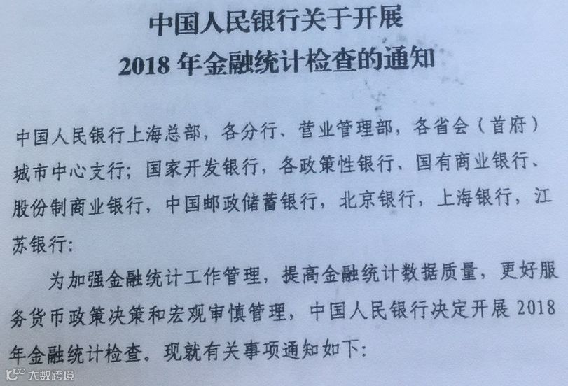 券商中国记者获取的央行所发《中国人民银行关于开展2018金融统计检查的通知》(以下简称《检查通知》)文件显示,央行为了加强金融统计工作管理,提高金融统计数据质量,更好的服务货币政策决策和宏观审慎管理,决定开展2018年金融统计检查。