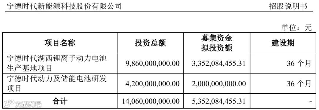 招股书显示,宁德时代此次预期募资的金额约为54.62亿元,将投向湖西锂离子动力电池生产基地项目和动力及储能电池研发项目。