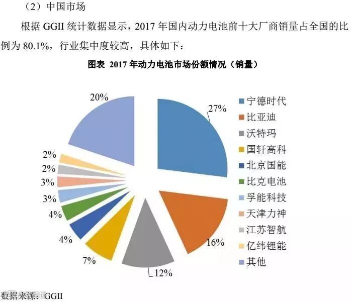 从国内市场来看,宁德时代2017年占有市场份额高达27%,占有绝对霸主地位。