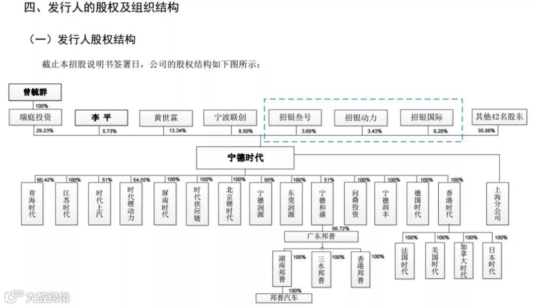 招股书显示,宁德时代实际控制人为曾毓群、李平,合计控制公司发行前股本总额的34.95%。本次发行完成后,曾毓群和李平仍为公司的实际控制人。