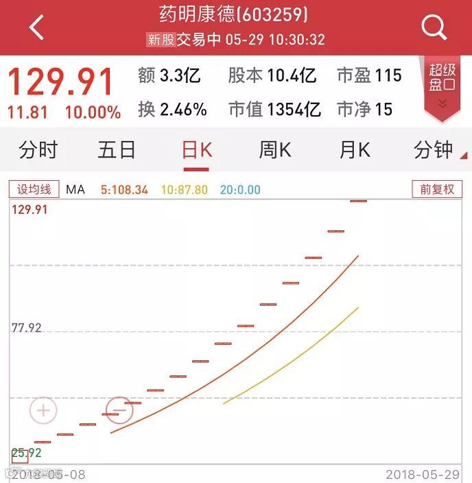 首只独角兽——药明康德上市后表现亮眼,截至5月29日,药明康德已经拿下15个涨停,截至券商中国发稿,涨停板仍未打开,以此计算,中签投资者已经盈利108310元,并创下今年新股中签盈利纪录。