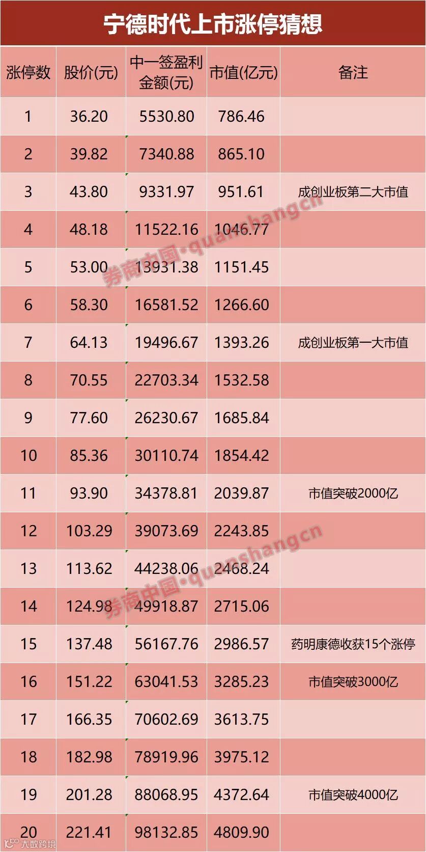 若以平均7个涨停计算,中一签宁德时代可盈利1.95万元,而且,此时宁德时代已成为创业板第一大市值股票;
