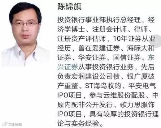 5月14日晚,网信证券上海投资银行部总经理陈锦旗在公司加班期间猝然离世。陈锦旗曾先后在爱建证券、海际大和证券、华安证券、国信证券、东兴证券、网信证券工作,负责过多项投资银行业务。