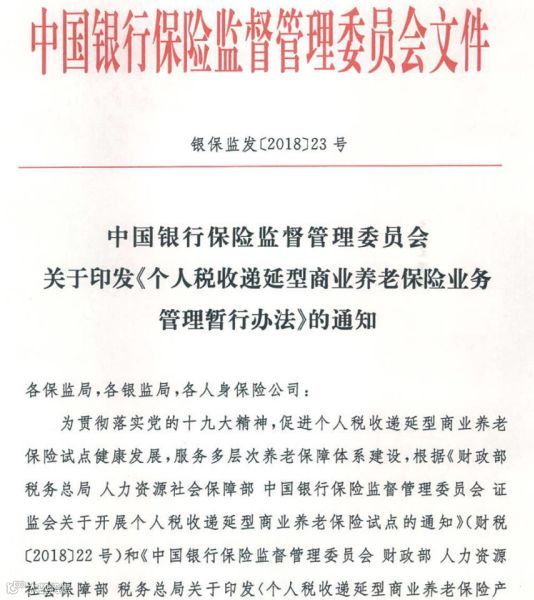 根据财政部、银保监会、证监会等部委联合下发的通知,2018年5月1日起,上海市、福建省(含厦门市)和苏州工业园区实施个人税收递延型商业养老保险试点。