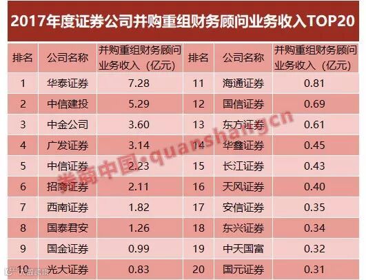 “并购重组财务顾问业务”被称作投行的“皇冠”,颇显投行实力。