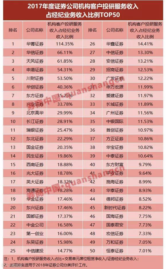 这一指标计算方式“交易单元席位租赁净收入/证券经纪业务收入”,排名且适用于2018年证券公司分类评价工作,对应的加分规则是“证券公司上一年度机构客户投研服务收入占经纪业务收入比例达到40%、30%、20%,且经纪业务收入位于行业中位数以上的,分别加2分、1分、0.5分。”