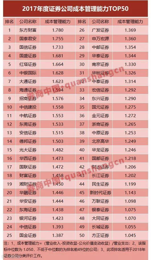值得一提的是,去年共有57家券商成本管理能力超过1,其中,国开证券成本管理能力行业排名由2016年度的第91名上升至第55名,进步飞快。