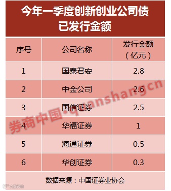 国泰君安证券、中金公司、国信证券、华福证券、海通证券及华创证券等6家券商承销发行4只创新创业公司债,合计金额9.7亿元。