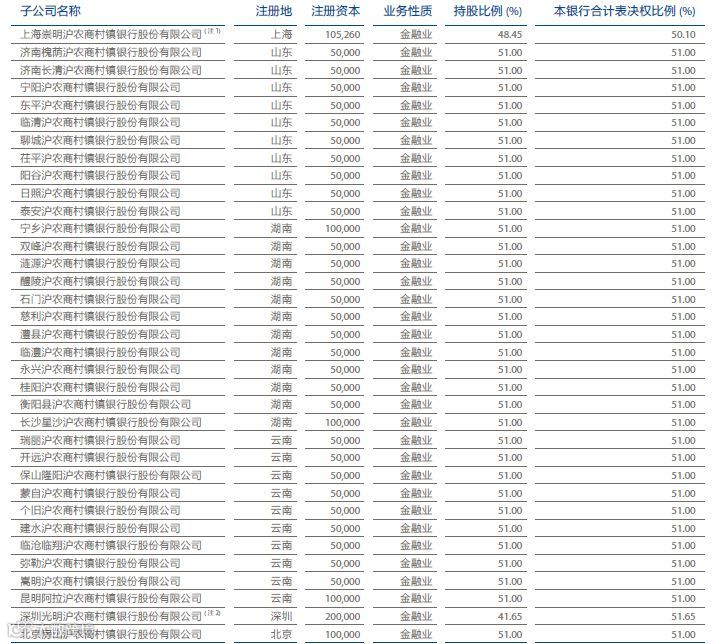 上海农商行持有35家村镇银行股权