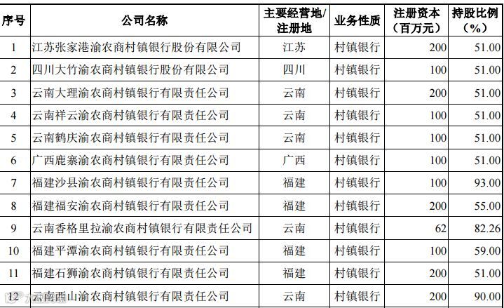 重庆农商行控股12家村镇银行