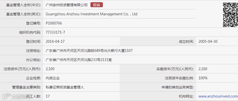 从中国基金业协会上的备案信息可以看出,广州安州投资成立于2005年4月30日,备案于2014年4月17日,公司注册资本为2100万元, 公司旗下备案的私募产品多达35只。