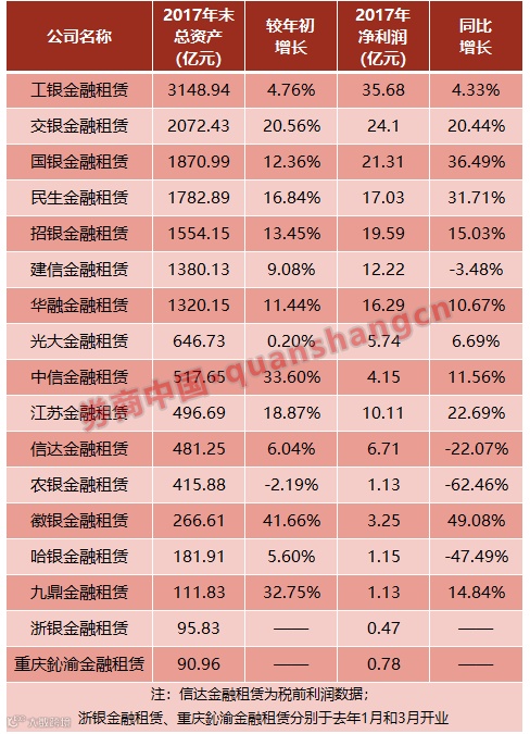 从表格中的17家金融租赁公司来看,大部分公司2017年依旧维持较快速度的规模扩张和盈利增长。