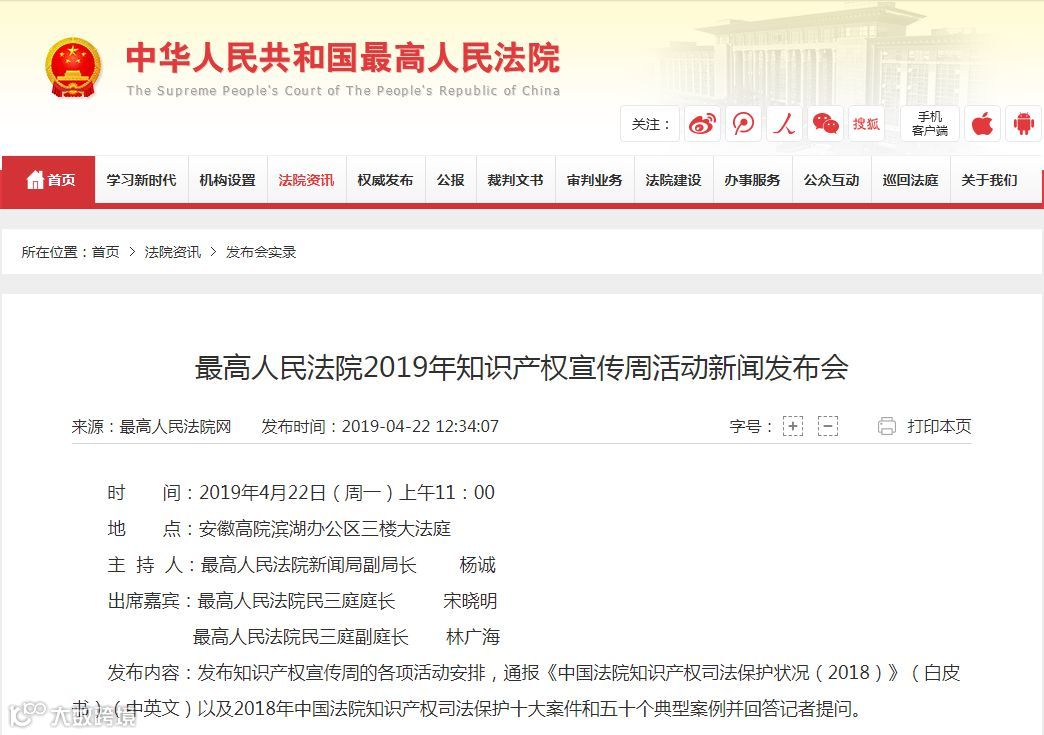 导读:为迎接426国际知识产权日,中华人民共和国最高人民法院于2019年4月22日公布2018年中国法院10大知识产权案件和五十个典型案例。