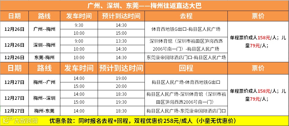 【代订巴士】梅州1天*梅州马拉松*【去程】单程巴士代订