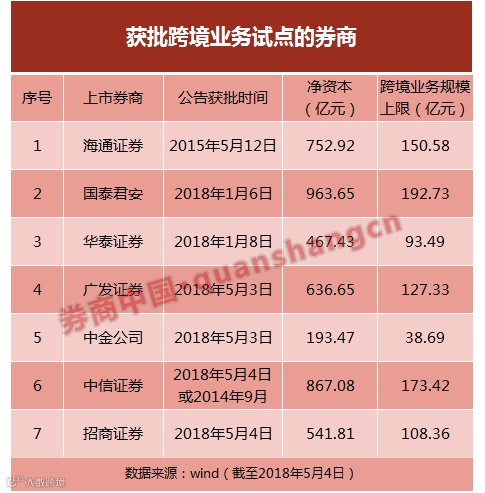 并且,近期在外资“引进来”的同时,多家内资券商也将“走出去”,目前已有至少7家券商获批试点跨境业务,包括中信、海通、国泰君安、华泰、广发、中金和招商等。