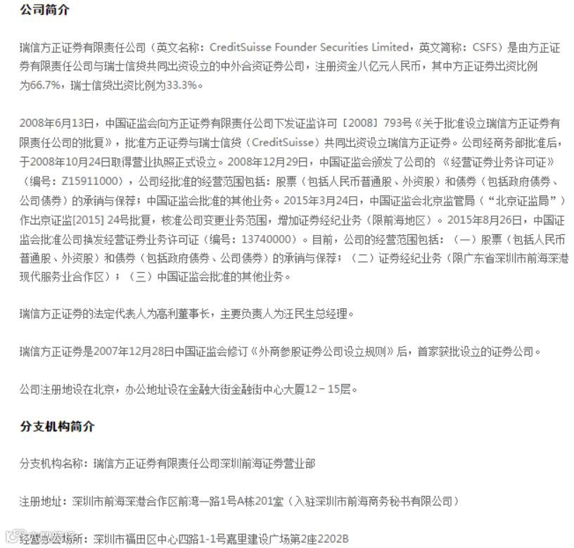 二、瑞信方正和瑞银证券的外资股东都来自瑞士,瑞信方正证券是2007年证监会修订《外商参股证券公司设立规则》后,首家获批设立的合资券商。
