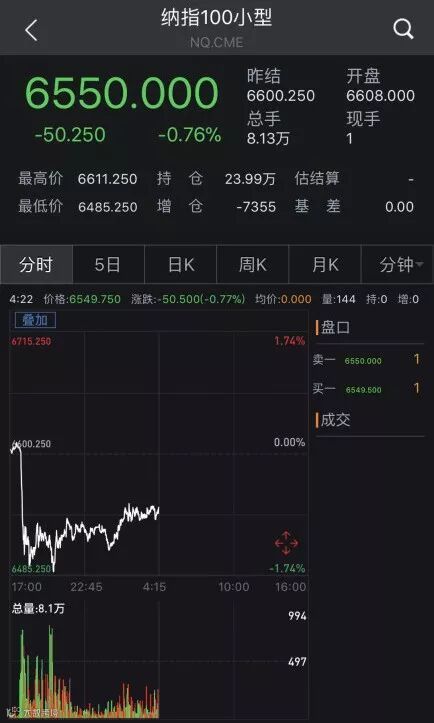 市场对贸易战担忧重燃,美股期货应声下挫,SP500小型和纳指100小型主力合约开盘直线跳水,跌幅均超过1.5%,截至券商中国记者发稿,分别下跌0.67%和0.76%。