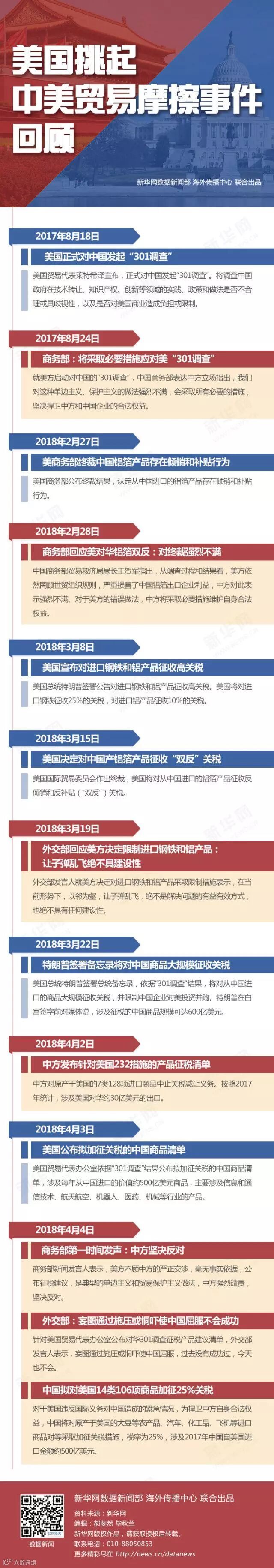 3月23日,总统特朗普在白宫签署总统备忘录,依据“301调查”结果,将对从中国进口的商品大规模征收关税,并限制中国企业对美投资并购,涉及征税的中国商品规模可达600亿美元。