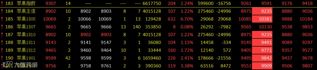 毫无疑问,苹果期货连续第二天成为期货市场的明星,有多火?看看下面这张图: