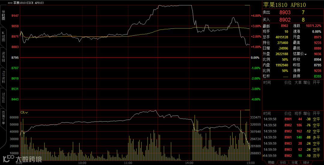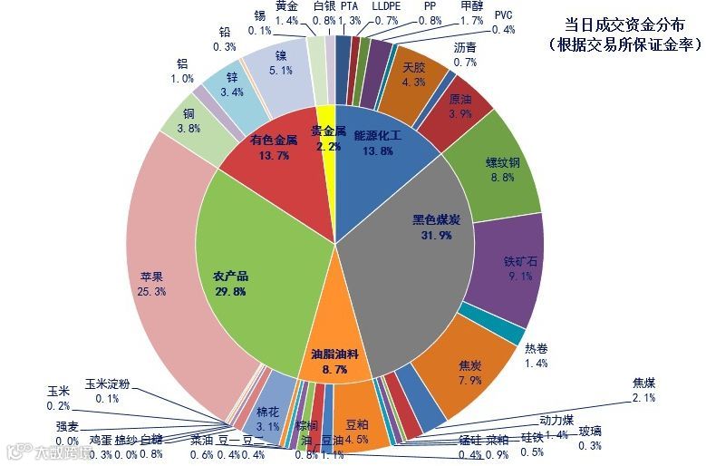 统计数据显示,苹果今天的成交资金占到了整个商品期货市场的25.3%……
