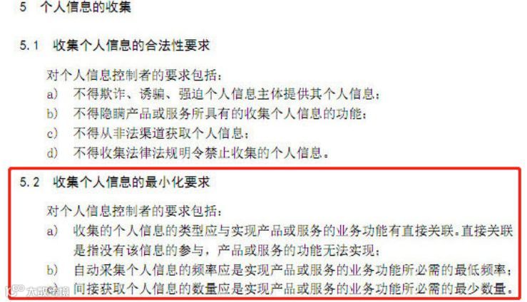 券商中国记者查阅资料发现,在涉及用户个人信息安全及权益保护上,除了《消费者权益保护法》,一项重要法规为2017年6月1日正式施行的《网络安全法》,明确禁止收集与其提供服务无关的个人信息,且需遵循“合法、正当、必要的原则”,而将于2018年5月1日开始施行的国家标准《信息安全技术/个人信息安全规范》解释,个人信息保存时间最小化、个人信息收集最小化,为如果“没有这些信息,产品或服务的功能无法实现”,且自动采集个人信息为最低频率、间接获取个人信息应为最少数量。
