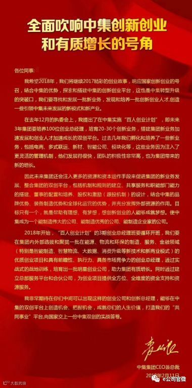 麦伯良:三年前我就已经意识到这个问题。面对新材料、人工智能等领域科技进步,以及新的商业模式风起云涌,再结合中集产业分布广的情况,我们当时提出“双创计划”。截至去年年底已经做了十几家了。今年开始制定了三年的“百人双创计划”,从今年开始再经历三年,孵化出一百家双创企业。