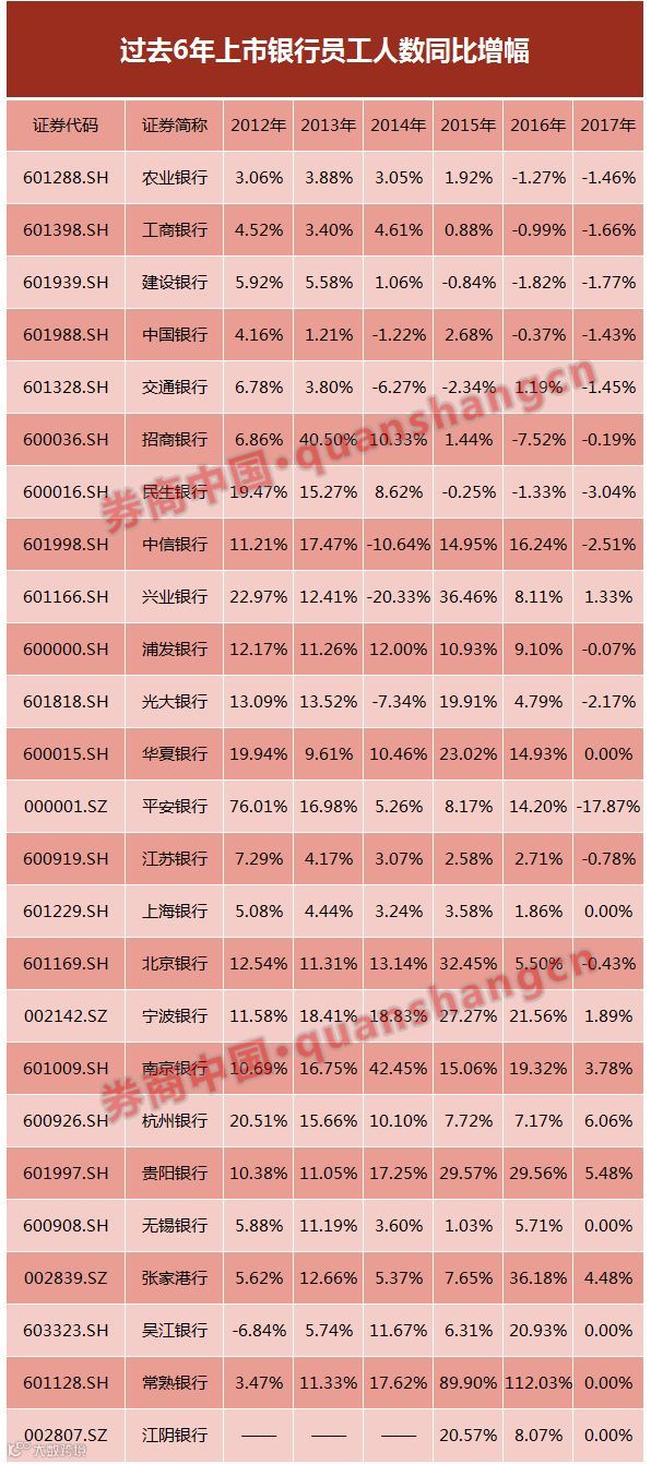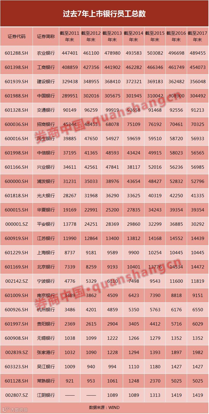 “一方面是和银行经营状况影响业务线相关;另一方面,金融科技冲击下,平安银行、浦发银行、建设银行都在转型,去柜台化、轻资产化。”一位股份行内部人士告诉券商中国记者,营业网点和实体柜台减员提效,不少传统人员流向互联网金融业务,或者转向了证券、租赁、信托等新兴业务和非银机构。