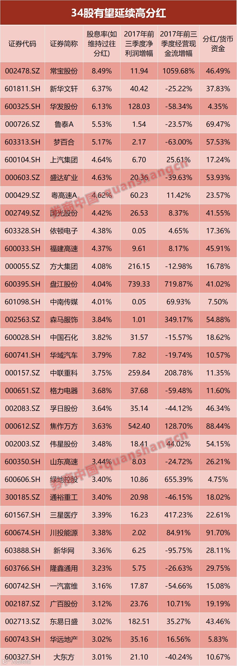 34股仍有潜力高分红