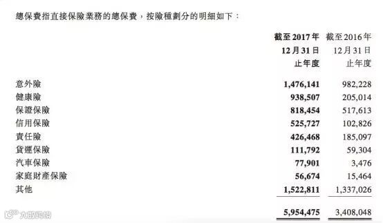 2017年,众安在线总保费59.545亿元,较2016年同比增长74.7%;