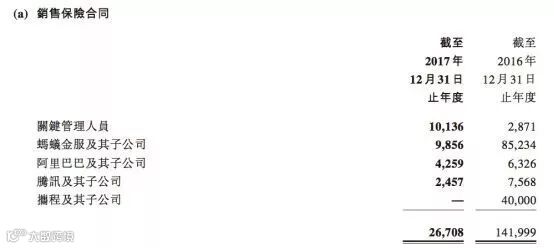在众安披露的关联交易里可以看到,公司与股东方蚂蚁金服销售渠道的业务增长不再显著,而对阿里巴巴和腾讯及子公司的依赖程度显著降低。