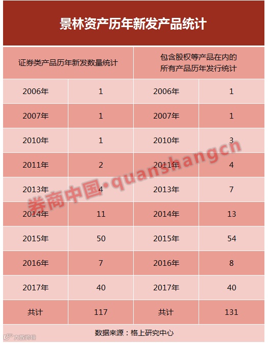 因为良好管理业绩,近几年景林管理规模快速增长。据格上研究中心统计,2015年、2017年是公司新产品发行最多的年份,新发产品数量超过40只。另据了解,目前公司管理规模已经突破200亿元。