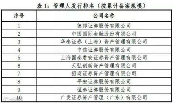 按照管理人备案产品的数量看,德邦、华泰、中金、中信、广发和国金证券六家机构2017年的发行数量均超过40只。按照管理人备案产品的规模看,德邦、中金、华泰、中信、国泰君安和天弘创新发行规模均超过500亿元。