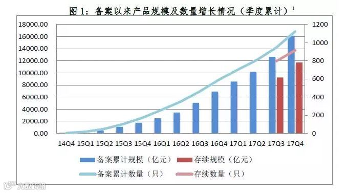 今日,中国基金业协会发布的最新数据显示,截至2017年12月31日,累计共有118家机构备案确认1125只资产支持专项计划,总发行规模达1.61万亿元,较2016年底累计规模增长了133.56%。其中,仍在存续期的产品915只,存续规模1.17万亿元。