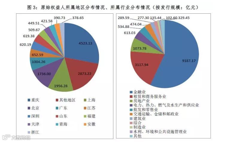 从原始权益人所属行业来看,分布较为集中,金融业、租赁业和房地产行业合计发行规模达13378.88亿元,规模占比接近83%。