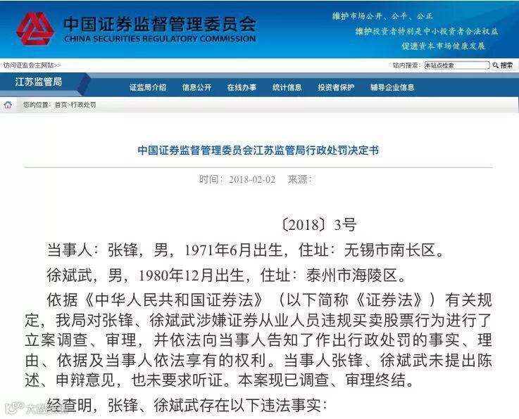 第一例罚单:国联证券总裁助理、信息技术部副总炒股,均被“没一罚一”,没收张锋违法所得94,069元,并对张锋处以94,069元罚款;没收徐斌武违法所得1,892,119元,并对徐斌武处以1,892,119元罚款。